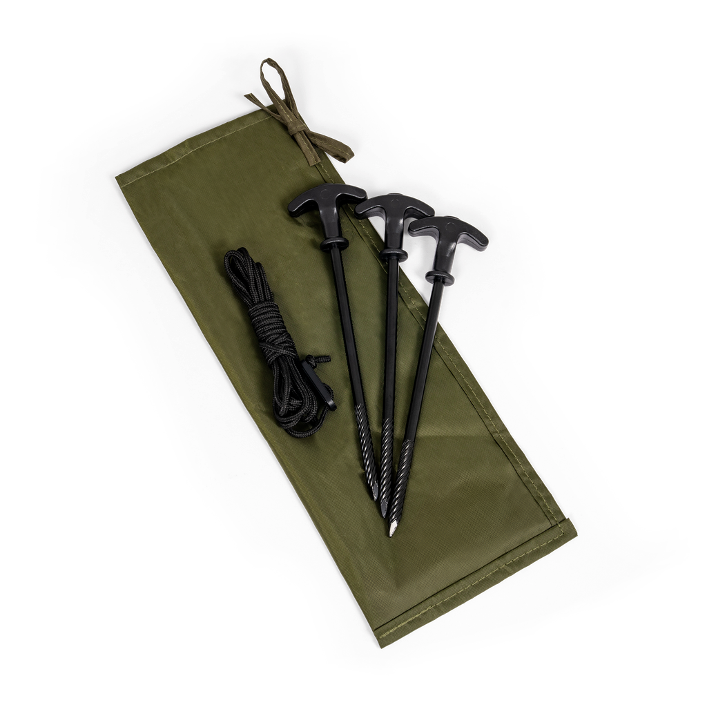 Le parapluie est livré avec une corde, des sardines de guidage, ainsi que deux points d’ancrage à l’arrière pour une fixation sécurisée.
